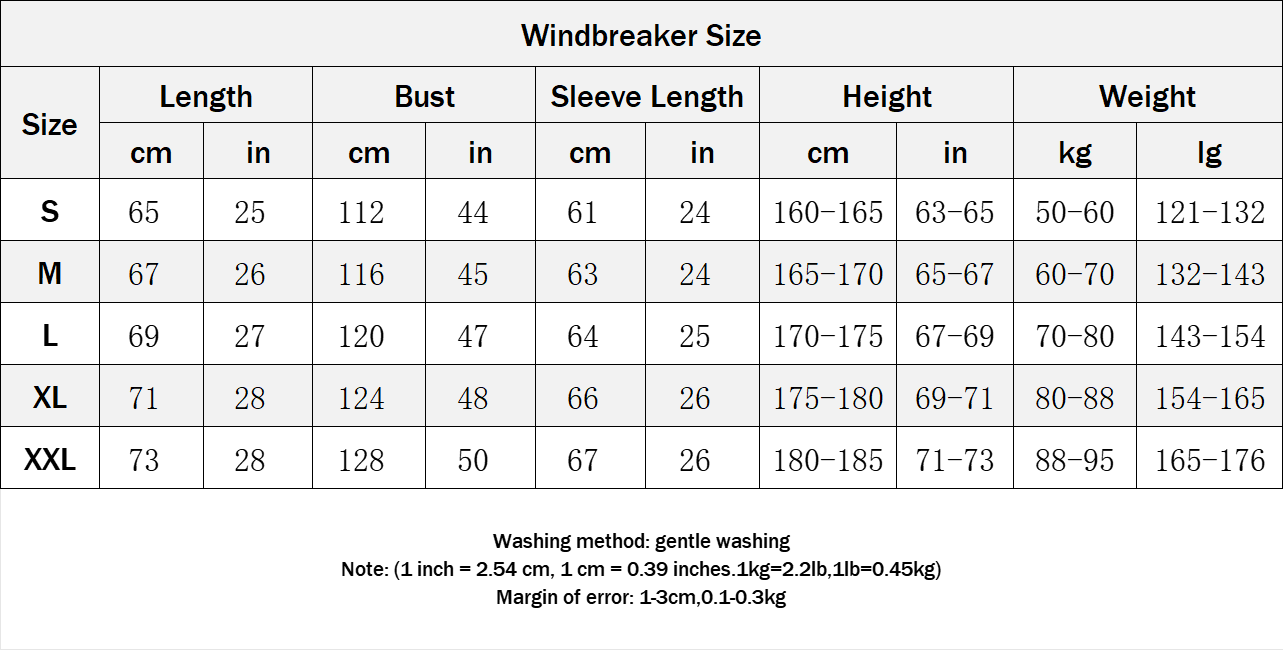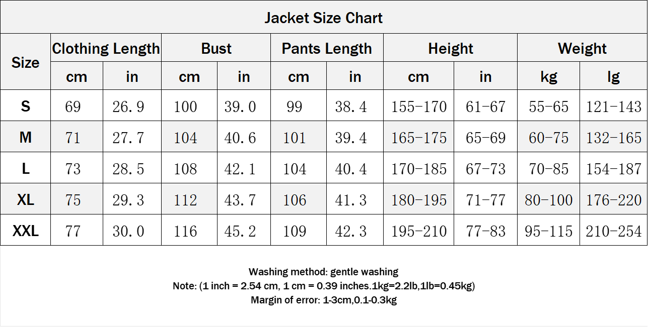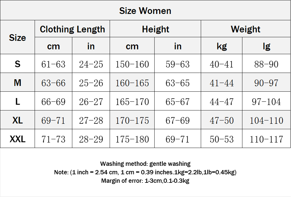 Due to variations in clothing characteristics and manual measurement methods, there may be a 2-4CM error, which is within a reasonable range. If you have any questions, please consult our customer service before making a purchase.