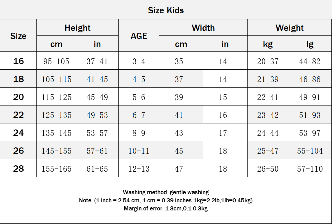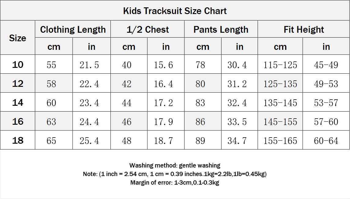 ◾Kids Tracksuit Size Chart ◾Windbreaker Size
